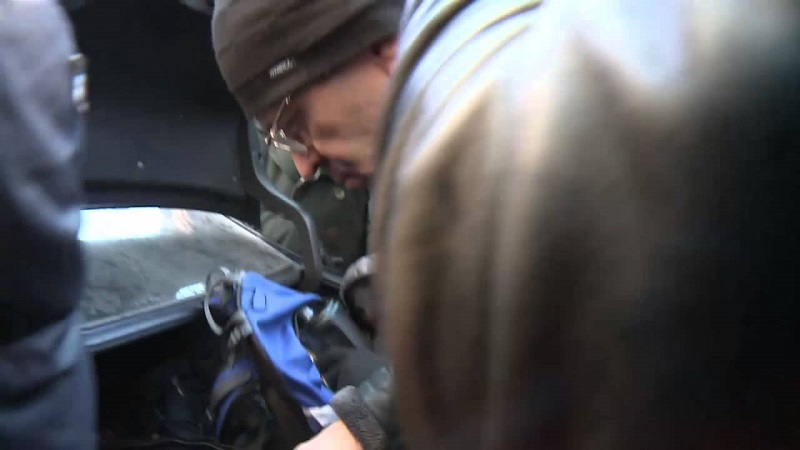 На ул. Институтской (напротив Крепостного переулка) активисты «самообороны» задерживают черную «Хонду». В багажнике машины они находят винтовку с прибором, похожим на оптический прицел. Одним из людей, осматривающих авто, был нардеп «Батькивщины» Сергей Пашинский. Он приказал человеку, вышедшему из салона иномарки, сесть обратно. При этом активисты кричали, что необходимо понюхать оружие, чтобы удостовериься, что из него в последние несколько часов не стреляли. Но Пашинский сам сел в это авто и был таков.
