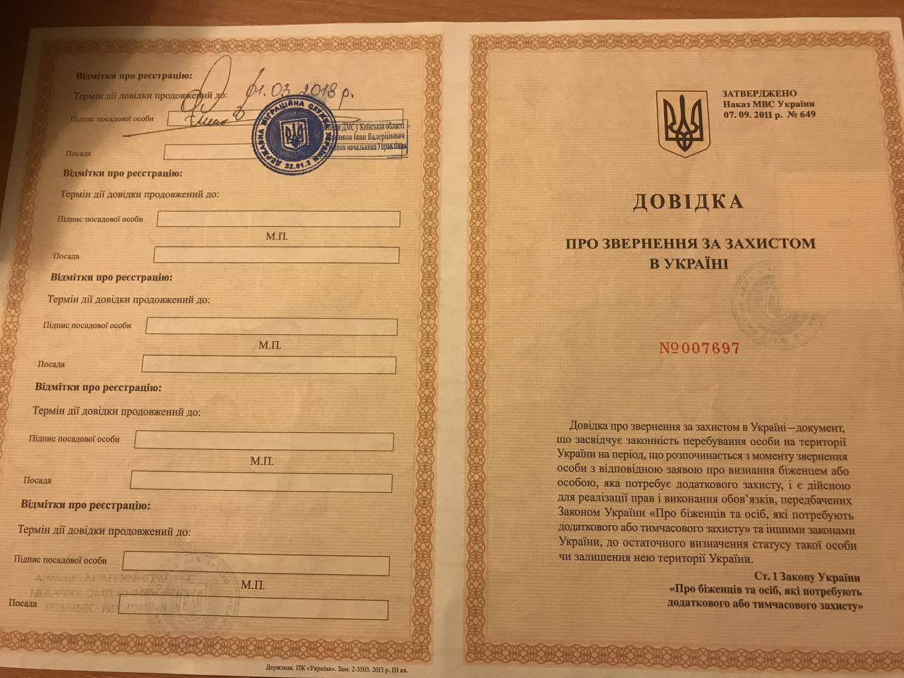 Соответствующее фото справки от Миграционной службы он опубликовал в Facebook.