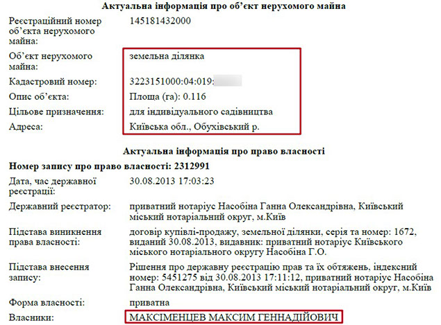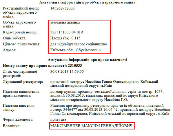 Також у Максима Максіменцева є дві земельні ділянки неподалік Козина. Їх задекларована вартість – 439 тис. грн.