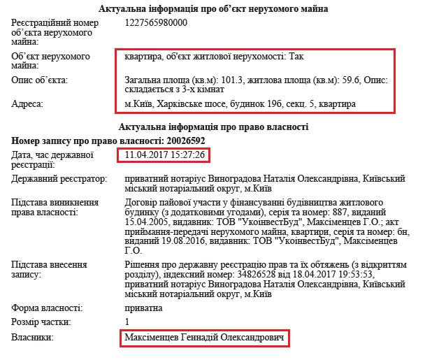 Також Геннадій Олександрович Максіменцев, 1939 року народження, у 2017 році придбав квартиру площею 101 м² та гараж за адесою Харківське шосе, 19-б. Подібне житло сьогодні коштує майже 2 млн грн.
