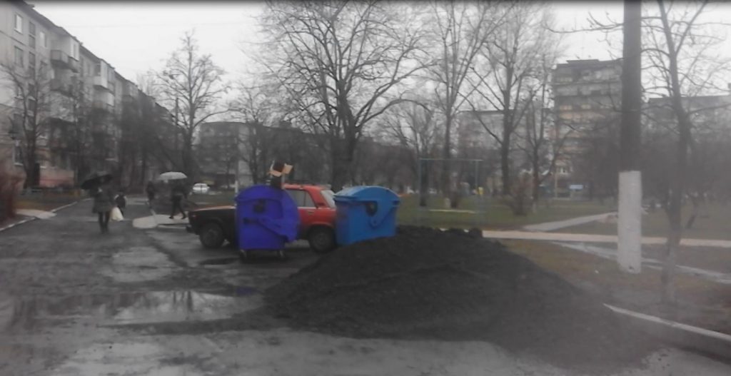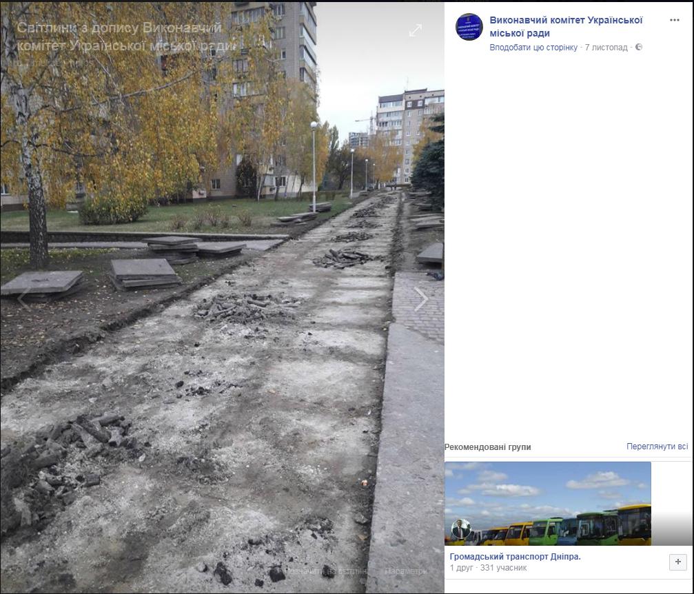 Крім того, перед улаштуванням асфальтного покриття біля міськради було розібрано старе покриття з бетонних плит (як це видно на фото, яке розміщене на сторінці виконавчого комітету Української міської ради у фейсбук)