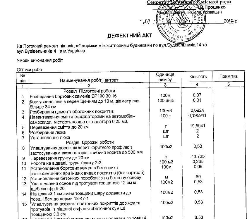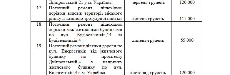 У додатку до цього документа, зокрема, зазначено, що 55 000 грн. виділяють на поточний ремонт пішохідної доріжки між житловими будинками по вул. Будівельників,14 та Будівельників,4 (пункт 18 таблиці додатку)