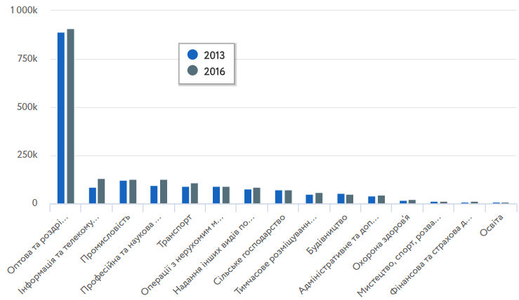 Увеличение количества субъектов хозяйствования привело к изменению количества предприятий в некоторых секторах экономики. Например, после кризиса 2014-2015 годов количество компаний в сфере информации и телекоммуникациях выросло на 33%, количество образовательных компаний — на 23%, а компаний из сферы профессиональной, научной и технической деятельности — на 22%.