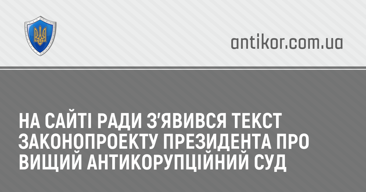 На сайті Верховної Ради України у вівторок з’явився текст законопроекту, поданого президентом, про Вищий антикорупційний суд.