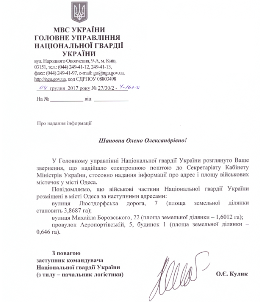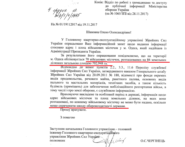 При этом важно отметить, что проанализировать все земли МО в Одессе крайне трудно - в ведомстве отказались предоставлять данные об адресах военных городков, сославшись на то, что данная информация может принести вред обороноспособности страны.