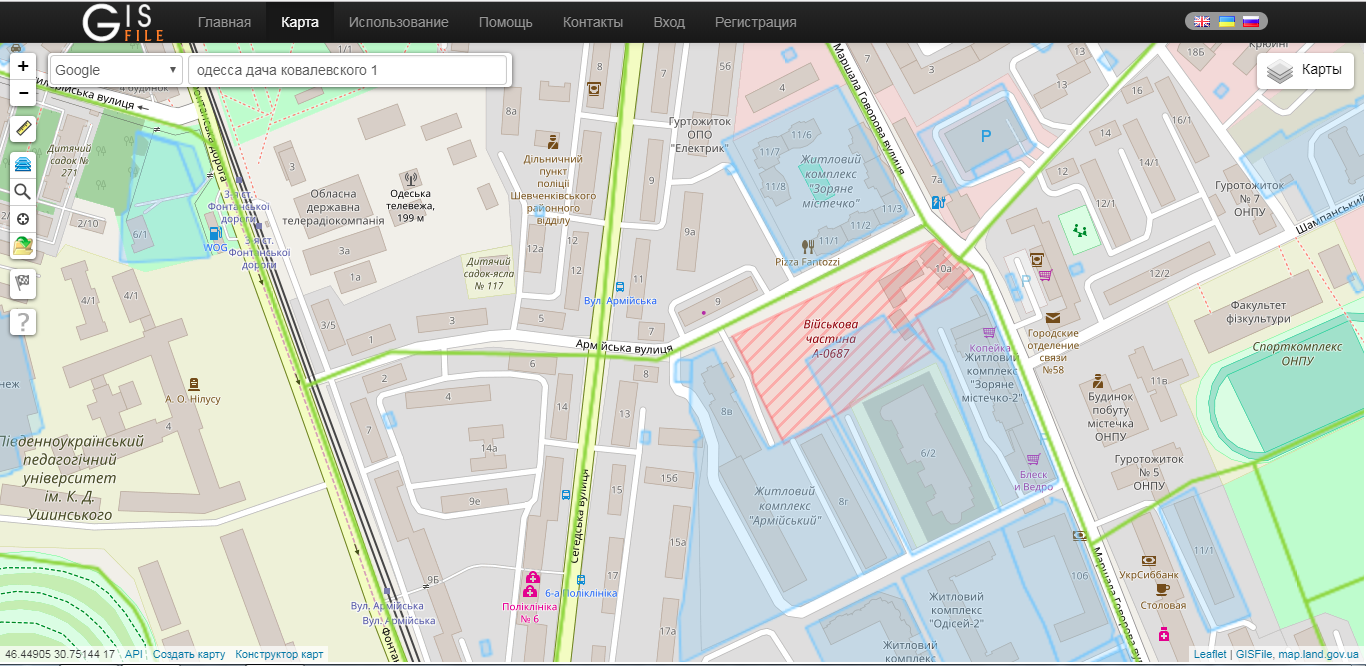Действительно, анализ кадастровой карты Одессы показывает - земля министерства обороны в городе зачастую не оформлена. Хотя в некоторых местах часть участков земли министерства выведены либо под аренду, либо в частные руки.