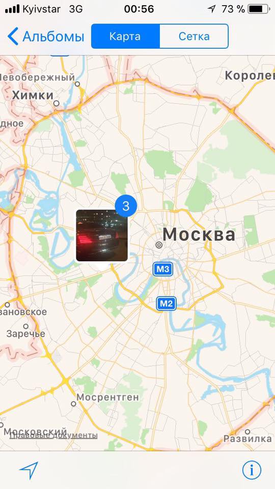 Вчора цей автомобіль бачила у Москві подруга з юнацтва мого товариша на Кутузівському проспекті. Прапор України – заклеєний.