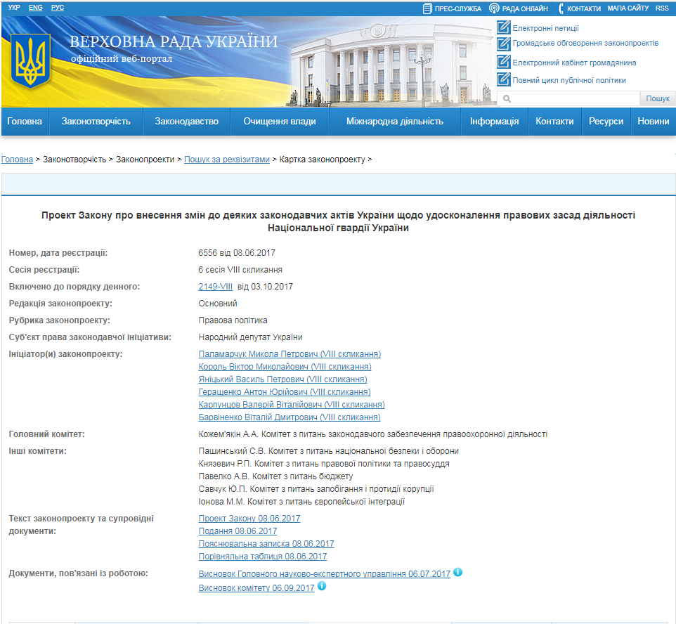 На розгляді в парламентському комітеті з питань прав людини перебуває проект Закону України «Про гарантії мирних зібрань» (№3587 від 07.12.2015 р.) за співавторством голови комітету, народного депутата України Немирі Григорія Михайловича.