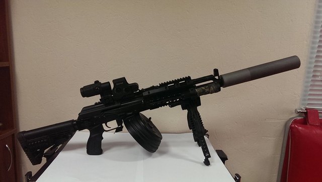 Прохання до всієі зброярськоі спільноти розшарити. Зброя індивідуально тюнінгована, унікальна. Якщо десь трапиться - дайте знати. Специфікація: АКМС МФ1, 7,62x39. Мушка перенесена на газовідвід, глушник титановий не фабрічний, приціли коліматор і магніфер EOTECH, решта шняг.