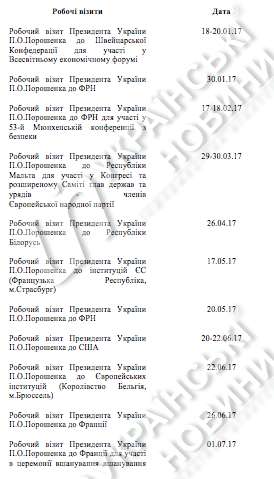 За прошлый год Президент Украины Петр Порошенко совершил 26 визитов в 18 государств.