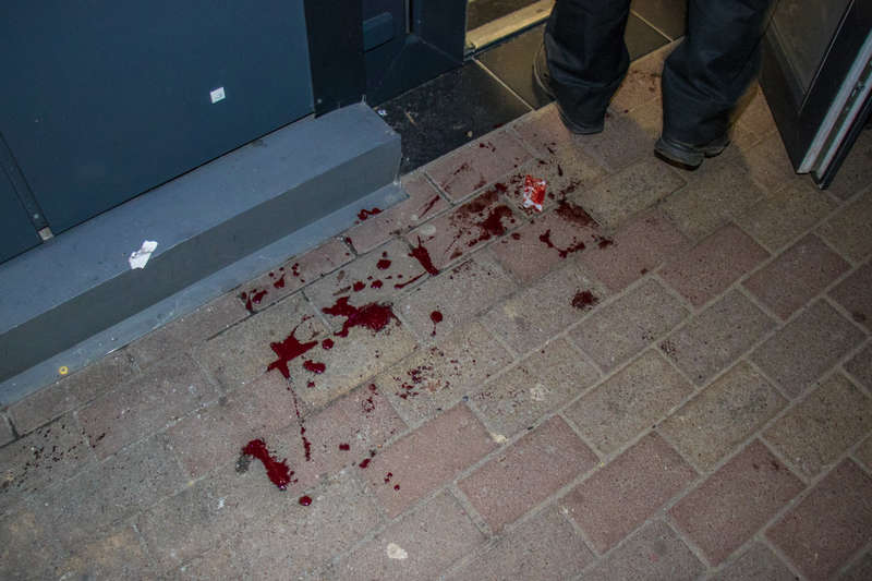 При входе в магазин на полу кровь пострадавшего