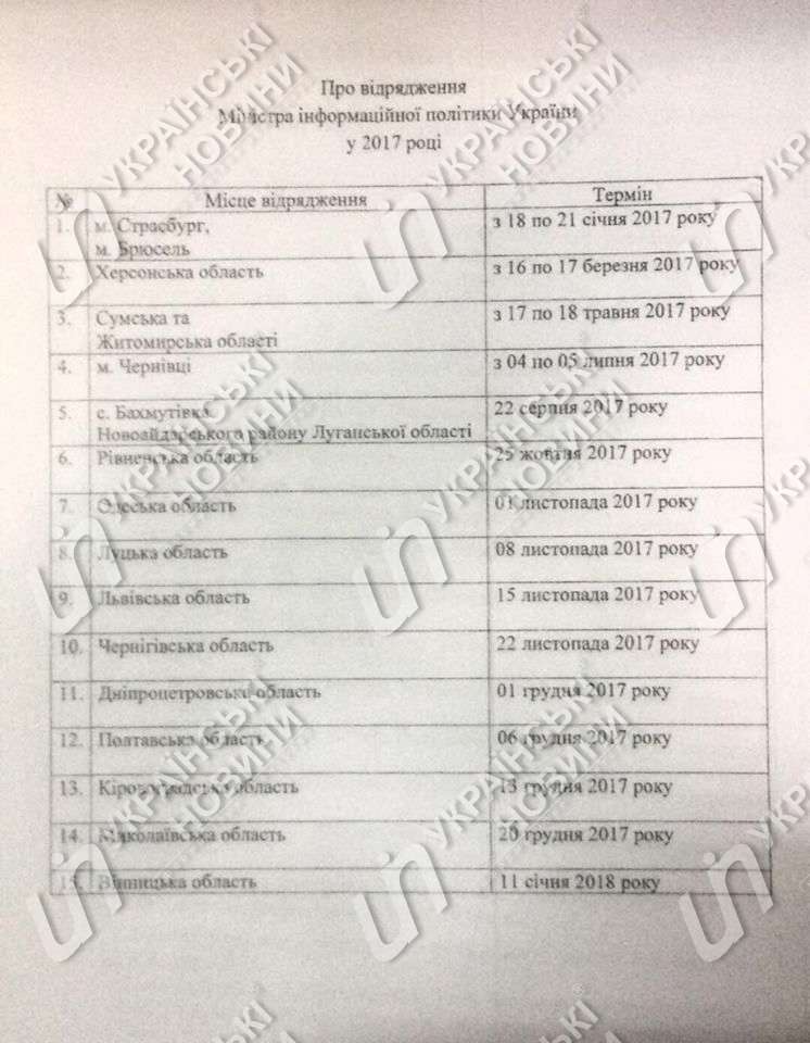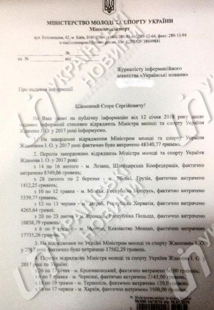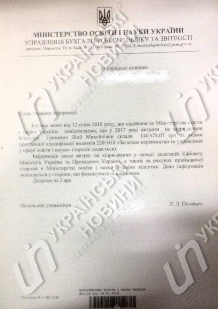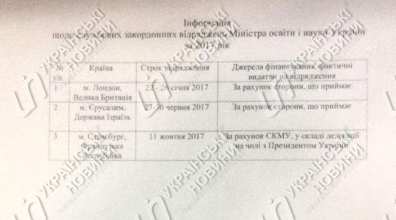 Министр информационной политики Юрий Стець потратил 17 855 гривен, министр молодежи и спорта Игорь Жданов - 65 903 гривны и министр образования и науки Лилия Гриневич - 140 674 гривны на командировки по Украине и за границу в 2017 году.