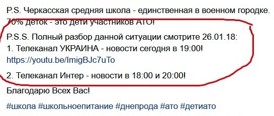 И вот еще о чем хочется сказать в адрес авторов этого сюжета. Задумывали они скандал для достижения своих крохотных личных целей – пробраться во власть. И абсолютно не подумали о том, какой при этом вред нанесли имиджу Украины в мире. Как смакуют сегодня их видео в стране-агрессоре, как по российским сайтам и телеканалам гуляют заголовки вроде этого: «Как свиньям: детям боевиков АТО раскладывали пищу по тарелкам руками (Видео)». Как издеваются над Украиной российские комментаторы, утверждая, что «Украина совсем нищая стала, у них в школах даже раздаточных ложек нет, раскладывают пищу детям руками». Да, конечно, есть такие строки: «Нам не дано предугадать, как наше слово отзовется». Но если у человека в сердце любовь к Украине, а не ненависть к конкурентам, если в голове у него мозги, а не опилки, то, создавая фейк, нужно подумать о том, как он аукнется для имиджа родины. В данном случае личные корыстные интересы превысили у создателей фейка всё остальное.