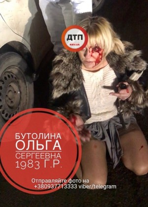 «27.01.2018 в 01:50 в центре города, на Борщаговской 2а, на Макдрайве, в усмерть пьяные водитель Ниссан номерной знак AI 0618 AT — Бутолина О.С. 1983г.р., бывшая сотрудница Киево-святошинского РВ Полиции, ныне сотрудница охранной компании «Венбест» и пассажир — Ламаш Ю.Б. 1980 г.р. — Полковник полиции, в попытке скрыться после совершенного ими ДТП, намеревалась сбить Прокопенко Евгению, которая преградила им путь к бегству.