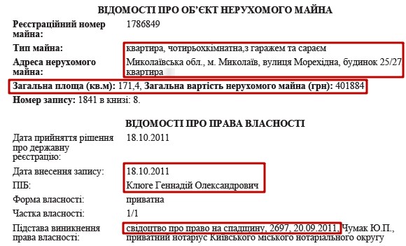 Еще одну квартиру Геннадий Александрович получил по наследству. Она размещена в Николаеве, а ее площадь - 171 кв. м.