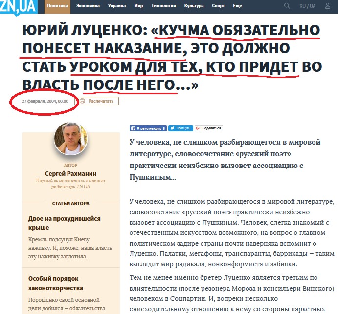 Кто заказчики? Это выяснилось практически сразу. После того, как Луценко вместе с Морозом обнародовали компромат с тайных аудиозаписей, сделанных охранником Кучмы Николаем Мельниченко. И в 2004ом Луценко бил себя пяткой в грудь, обещая, что Леонида Кучму настигнет возмездие, которое станет уроком будущим президентам.