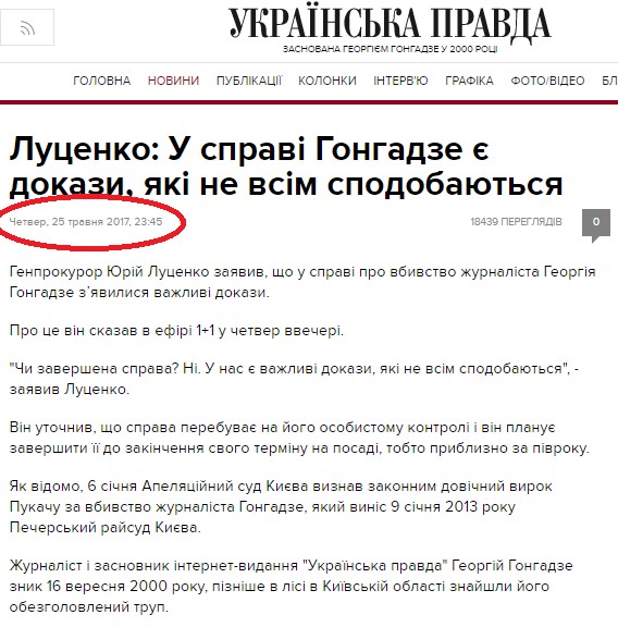 25 мая 2017 года на 1+1 Генпрокурор в очередной раз обещал завершить расследование заказного убийства и бравировал некими доказательствами, «которые не всем понравятся».