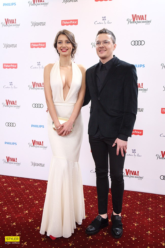 Фронтмен группы O.Torvald Женя Галич появился на красной дорожке премии "Viva! Самые красивые 2018" с Мисс-Украина-2017 Полиной Ткач.