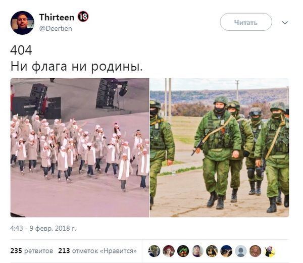 В сети высмеяли олимпийских спортсменов из России, которые вышли нацеремонию открытия Олимпиады-2018 под нейтральным флагом.