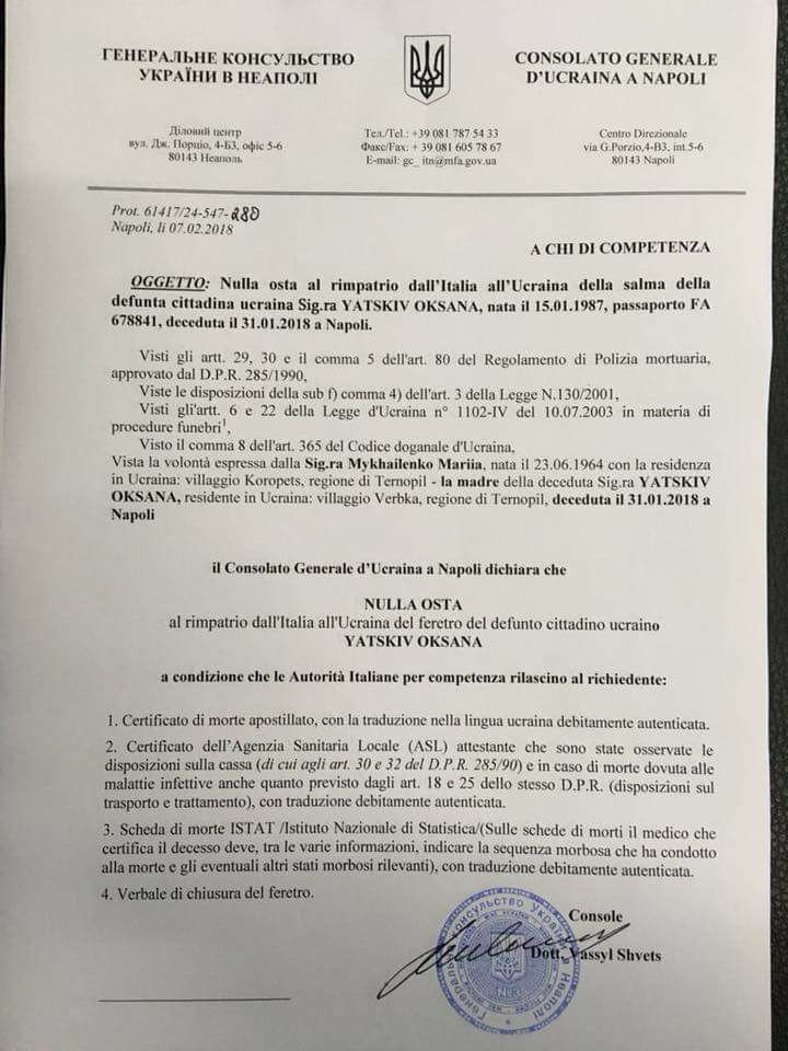 Теги: Нужна помощьЯцкив ОксанаНеапольсмертьИталияУкраинцы