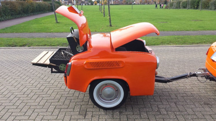 Как нам кажется, очень удачно справился с этой задачей автор стильного сити-кара на базе «горбатого». Оригинальной и практичной идеей оказалось прикрепить на крышу ЗАЗа большой чемодан, ведь места в салоне не так уж много. Кроме того, автомобиль получил прицеп, который кроме своего прямого предназначения, может послужить для приготовления барбекю.