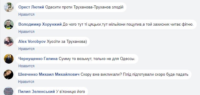 «Из Одессы в Киев прибыл десант гребаный титушни. Высадился десант в помещении суда, где будут судить их пахана – гражданина РФ Труханова», – сообщил активист Евгений Шевченко.