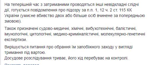 "Военной прокуратурой сил антитеррористической операции совместно с полицией Донецкой области на первой линии обороны вблизи населенного пункта Широкино выявлен факт убийства четырех военнослужащих одного из подразделений Вооруженных Сил Украины. На теле погибших обнаружены огнестрельные пулевые ранения, а в помещении, где последние находились, - признаки сокрытия преступления (поджога и закладки взрывчатки)", – написал Лысенко.