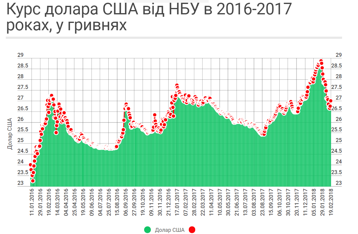 В госбюджете-2018 заложили курс 29,3 грн за доллар, а в прошлом году закладывали 27,2 грн.