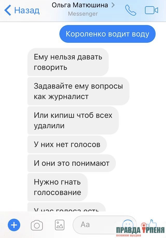 Юрист Роман Шестопалов передав журналістам переписку зі скандальною Коцюбинською селищною головою Ольгою Матюшиною через Facebook-месенджер.