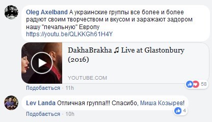 "А украинские группы все более и более радуют своим творчеством и вкусом и заражают задором нашу "печальную" Европу", - подчеркнули под постом.