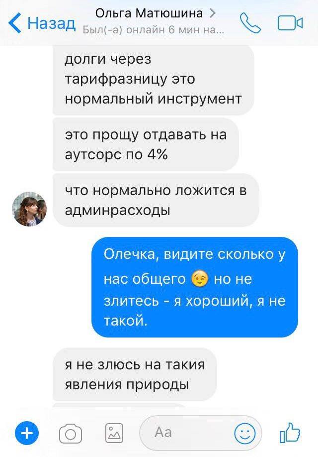 Матюшина у переписці підтверджує, що пересікалася з Колесніковим, проте демонструє потужну обізнаність у «воровському» світі та підозрює Колеснікова у зв’язках з ФСБ: «Колесніков навряд чи олігарх, але косить під нього. І непорядний на додачу до всього. Тримає при собі професійних злодіїв. Надто фсбешниками від нього пахне».