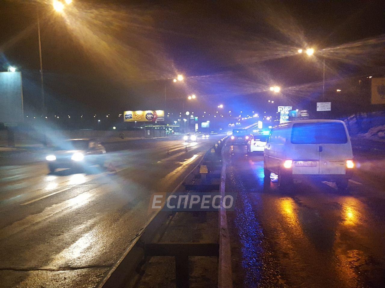 На Наддніпрянському шосе у Печерському районі столиці сталася подвійна ДТП за участю двох пішоходів.