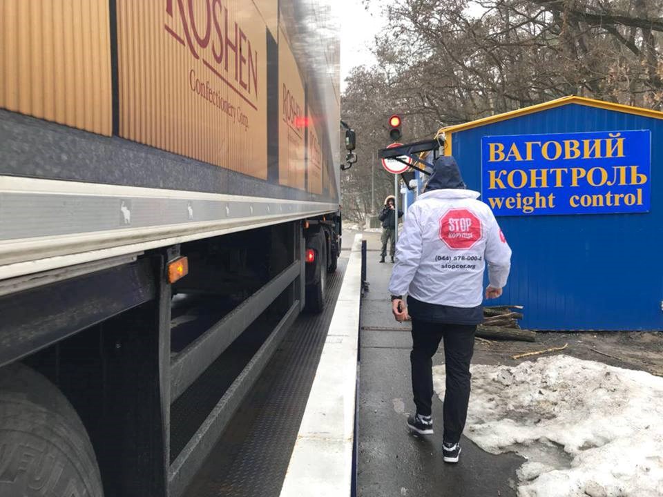Активисты проекта "Стоп коррупции" совместно с представителями "Укртрансбезпеки" выехали на рейд по контрольному взвешиванию многотонных грузовиков с целью предотвращения порчи дорожного покрытия.