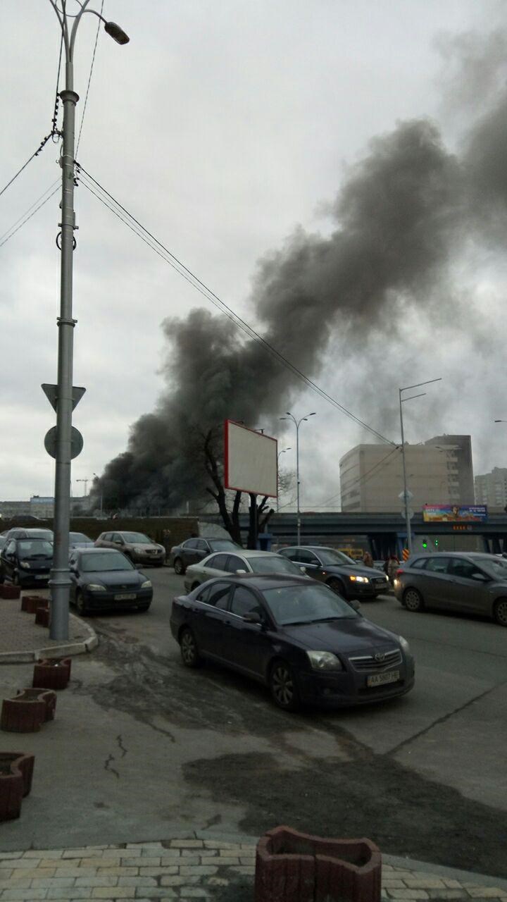 В Киеве возле станции метро "Левобережная" произошел пожар.
