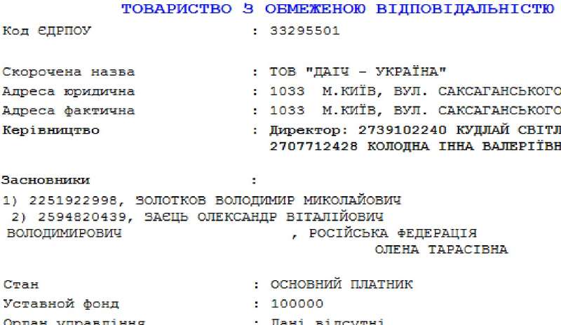 В настоящий момент фирма переписана на номинального учредителя, и как будто бы не имеет никакого отношения к окружению Луценко.