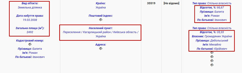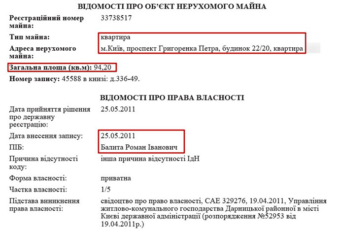 Із 2012 року Роман Іванович Балита є власником ще однієї земельної ділянки, яка розташована в с. Кучаків, що теж на Київщині. На жаль, точного розташування цих земельних ділянок нам з’ясувати не вдалося, оскільки вони відсутні у реєстрі речових прав на нерухоме майно.