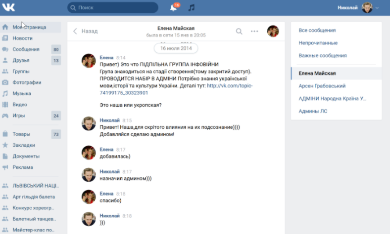 Так, она выяснила, что Санжаревский создавал паблики и маскировал их под патриотические украинские и занимался скрытой пропагандой.
