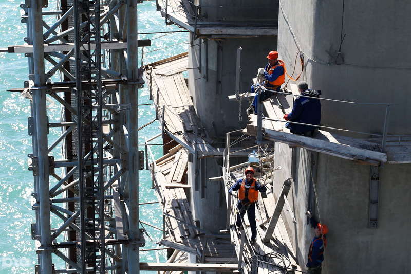В сети появились фотографии со строительства Крымского моста, который должен быть запущен в конце мая.