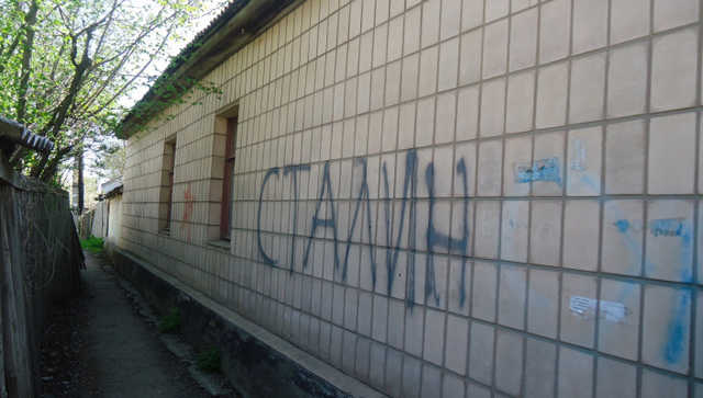 Одна из таких надписей запечатлена на улице 395-й шахтерской дивизии. Рядом неизвестные сторонники Сталина также нарисовали красную звезду.