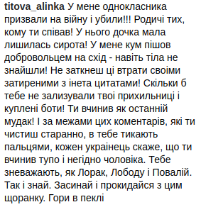 Однако были и те, кто раскритиковал позицию певца и напомнил ему о войне на Донбассе.