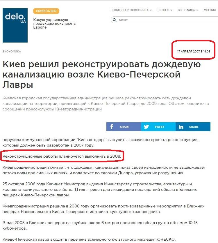 Власть Киева 10 лет ремонтирует канализацию близ Киево-Печерской Лавры. Документ