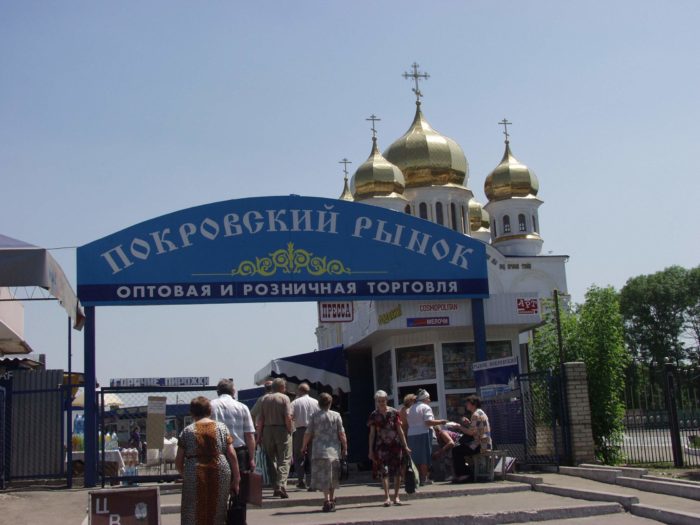 Після введення культової споруди в експлуатацію виявилось, що біля храму залишається невикористаною велика ділянка землі. Прокурорське нутро далося взнаки й упритул до церковних стін було вирішено побудувати ринок, названий з такої нагоди Покровським. А для будівництва та експлуатації ринку підлеглі Васильєва відкрили Товариство з обмеженою відповідальністю «Свята Діва Марія», записане на довірених осіб Рафаеля Кузьміна. Та прокурори б не були прокурорами, якби будували ринок на власні кошти — Кузьмін і Ко зібрали з довірливих донеччан 600 тис. доларів, а потім інвесторів «кинули на бабки», виключивши з числа засновників ТОВ «Свята Діва Марія» шляхом підробки документів.
