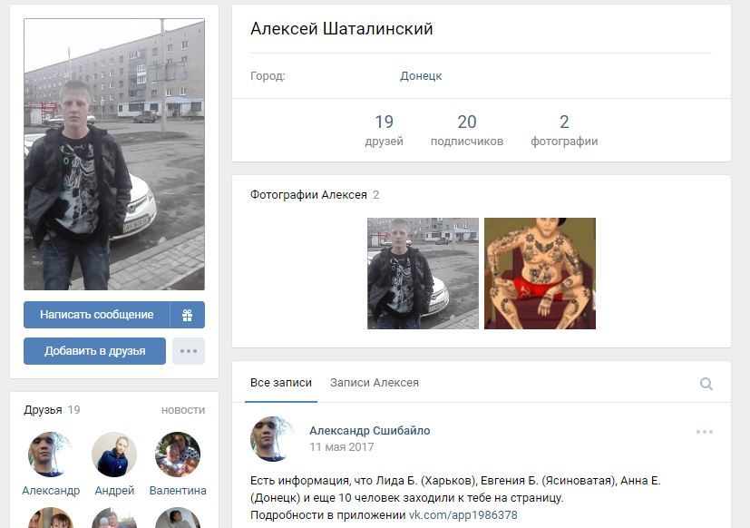 На страничке в "ВКонтакте" он сообщил, что воспитывался в интернате, а сам родом из Торецка, Донецкой области.