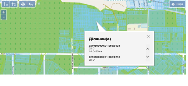 На кадастровій карті ділянка землі, віддана Анатолієм Федоруком та депутатами Бучанської міської ради 2006-2010 років Олегу Ляшку та його поплічникам, об’єднана в одну, розміром більше 14 га. Робочі наголошують – тепер це маєток сина президента.