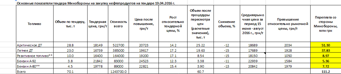 Апрельский тендер Министерства обороны Украины на поставку 70 тыс. т нефтепродуктов может стать хрестоматийным. Здесь гремучая смесь несовершенства законодательства, непрофессионализма, халатности с очень неприятным душком коррупции. Уверенно можно говорить о том, что чиновники Минобороны неоднократно нарушили закон, результатом чего стала переплата поставщику более 100 млн грн и меньший объем топлива по сравнению с первоначальным.