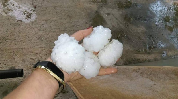 Там выпал град размером с теннисный мяч, который разбил автомобили и крыши и уничтожил сельскохозяйственные угодья.