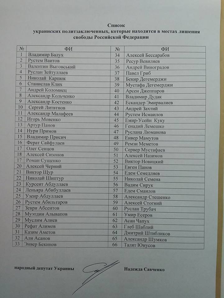 В прилагаемом списке указаны фамилии 66 украинцев.
