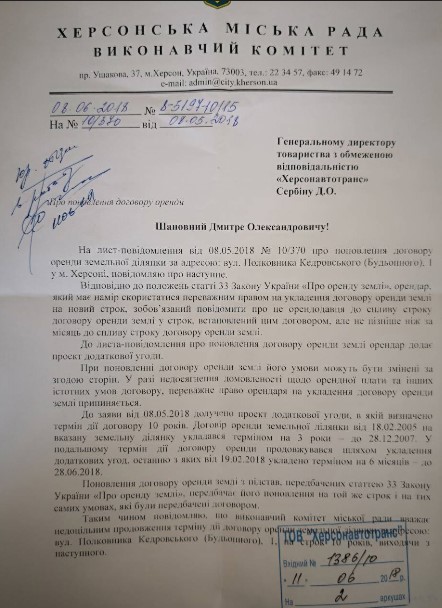Напомним, что земельный участок под имущественным комплексом автовокзала и территория его обслуживания выделялись решением исполкома Херсонского городского совета трудящих No28 от 22.01.1969 с площадью земельного участка 4 га. В последующем «Херсонавтотранс» осуществлял пользование земельным участком в соответствии с актом на право постоянного пользования землей I-XC No002187 от 18.06.1996. Далее, как и полагается законному пользователю заключил договор аренды на 10 лет. В декабре 2017 года депутаты продлили договор аренды «Хесонавтотрансу» только лишь на полгода без видимых причин.