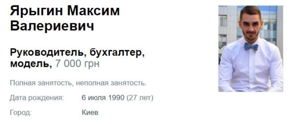Разом з тим, на порталі з пошуку роботи розміщене нібито його резюме. Згідно з ним, Максим наразі готовий працювати усього за 7 тисяч на таких позиціях як «керівник», «модель», «бухгалтер».