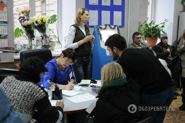 "Конфликтных ситуаций, к счастью, не было. Мы стараемся всем помочь, но сами видите, желающих сдать документы очень много", - говорит начальник отдела централизованного оформления документов №3 ГУГМС Украины в Киеве Марина Морозова.